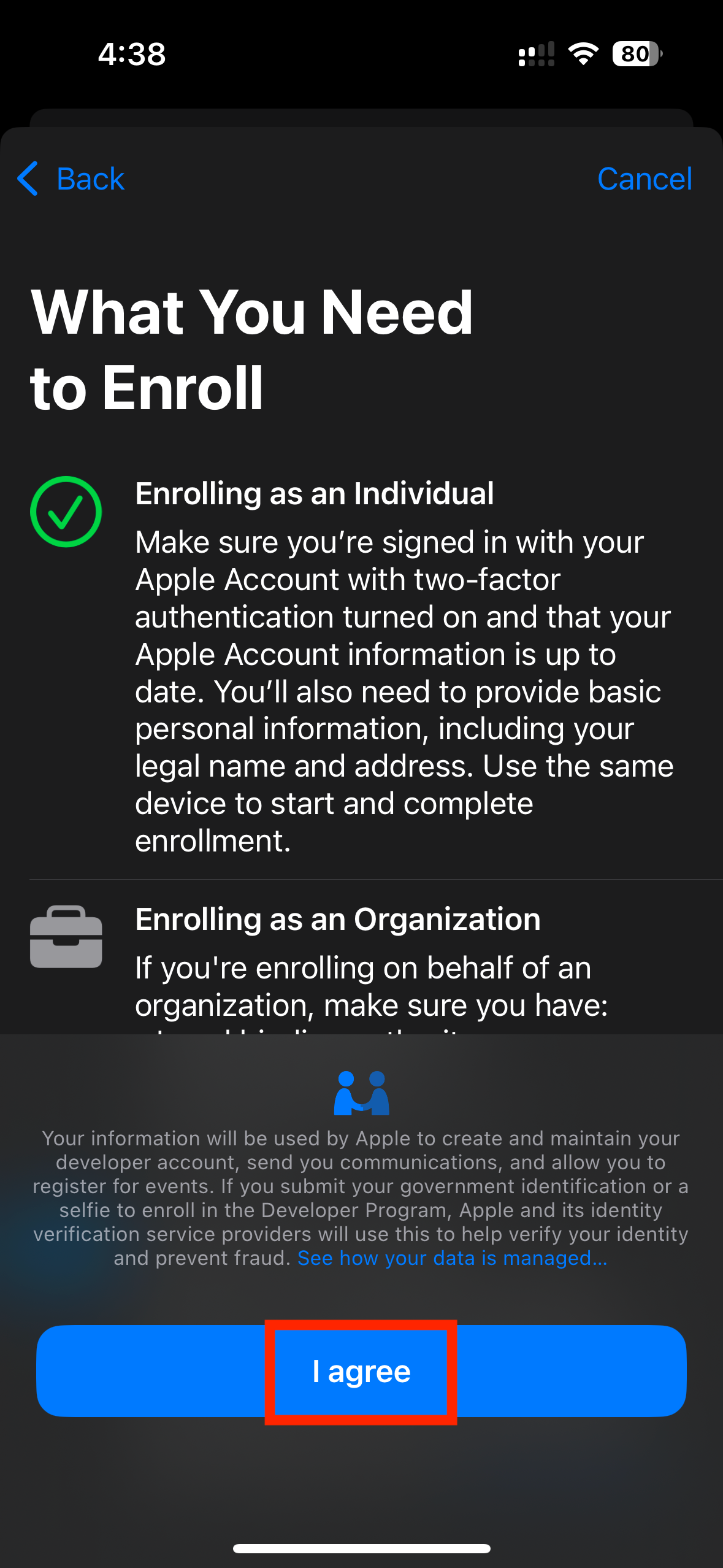 - Lisez l’accord et sélectionnez Je suis d’accord.