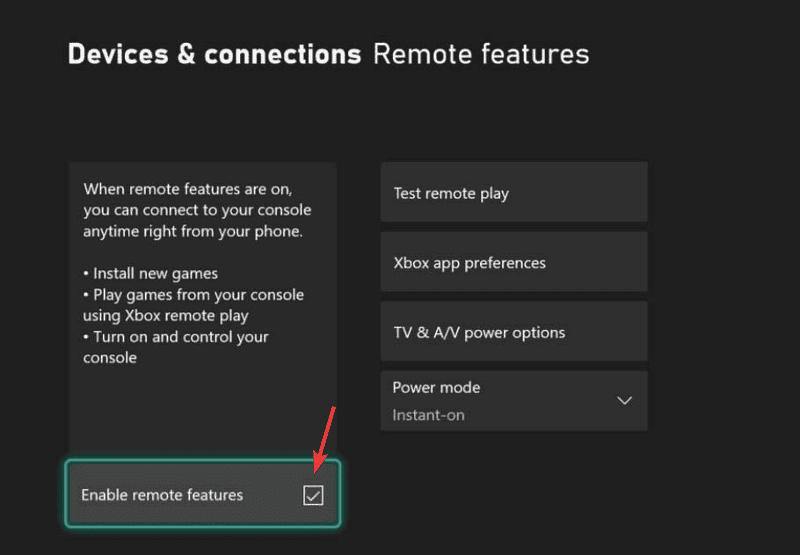 - Sélectionner Caractéristiques éloignées et vérifier le Activer les fonctionnalités distantes option.