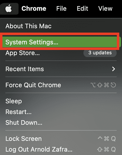 1. Cliquez sur Menu Apple> Paramètres système (ou Préférences du système).