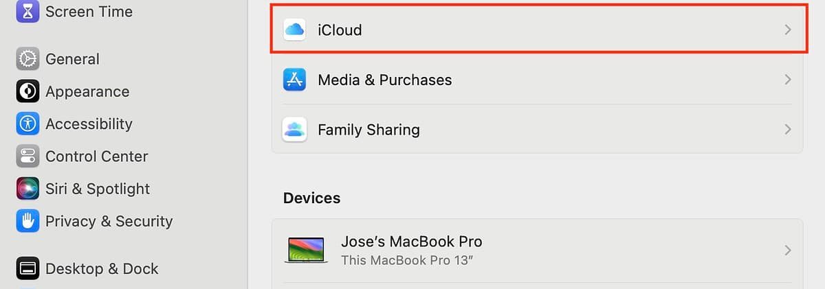 - Cliquez sur Menu Apple > Paramètres du système > (Votre profil d’identification Apple) > iCloud.