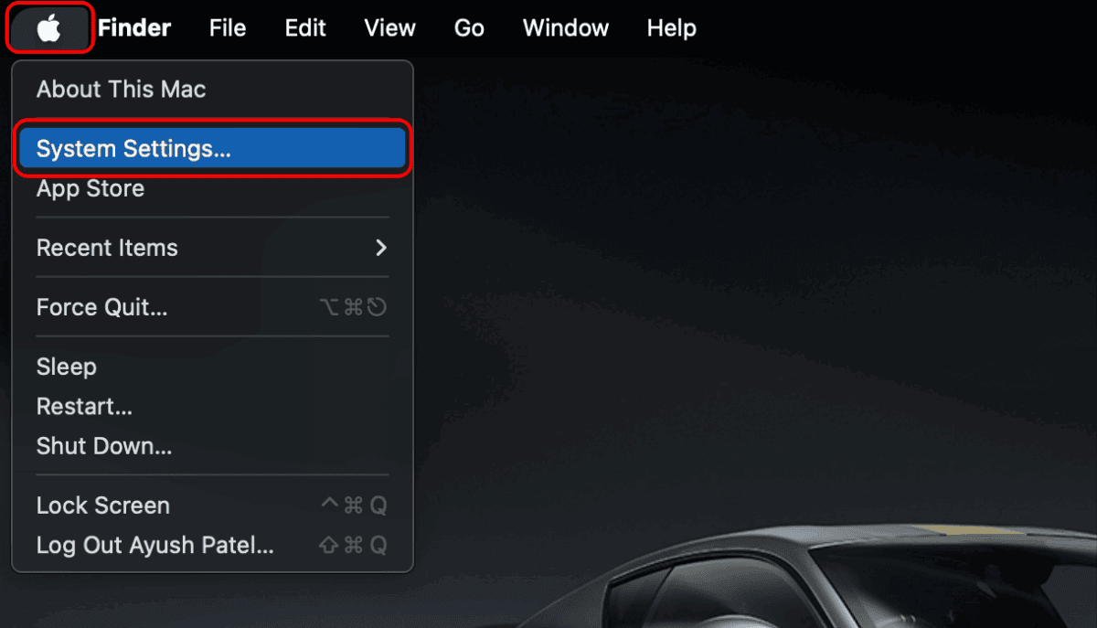 - Cliquez sur Logo Apple dans la barre de menu et sélectionner Paramètres du système.
