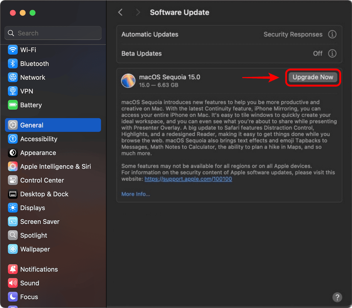 - Si une nouvelle mise à jour macOS est disponible, cliquez Mettre à jour maintenant.