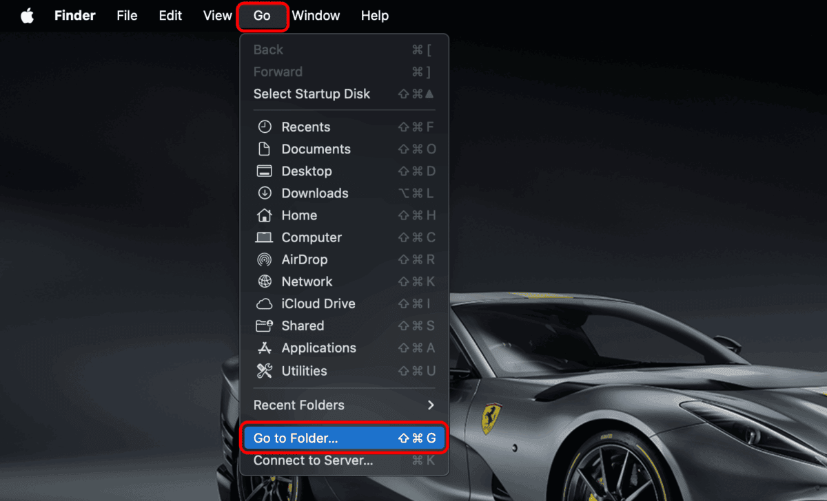 - Ouvrir le Chercheur sur Mac et cliquez Allez> aller dans le dossier dans la barre de menu.