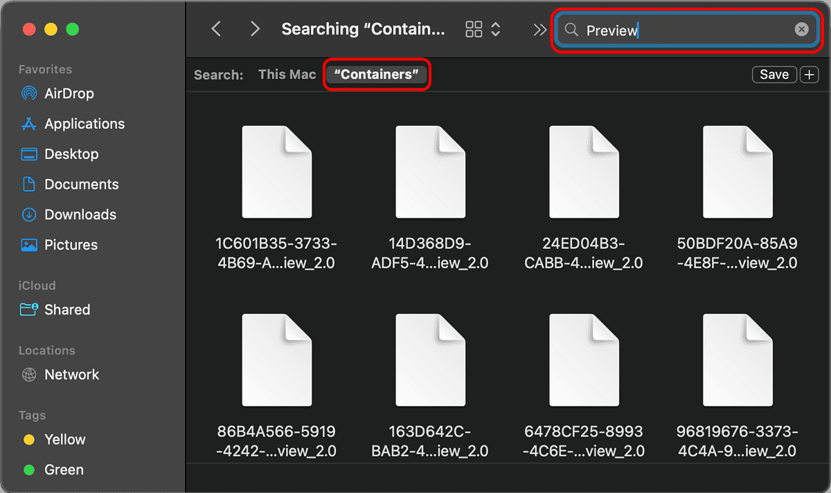 - Maintenant, à l’intérieur du dossier des conteneurs, cliquez Recherche et taper Prévisualisation.