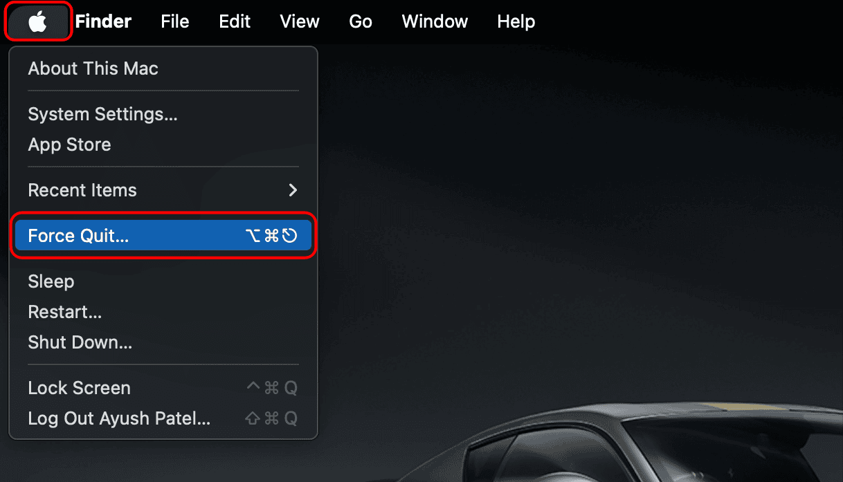 - Une fois que vous avez fait cela, cliquez sur le Logo Apple dans la barre de menu et appuyer Force quitter.