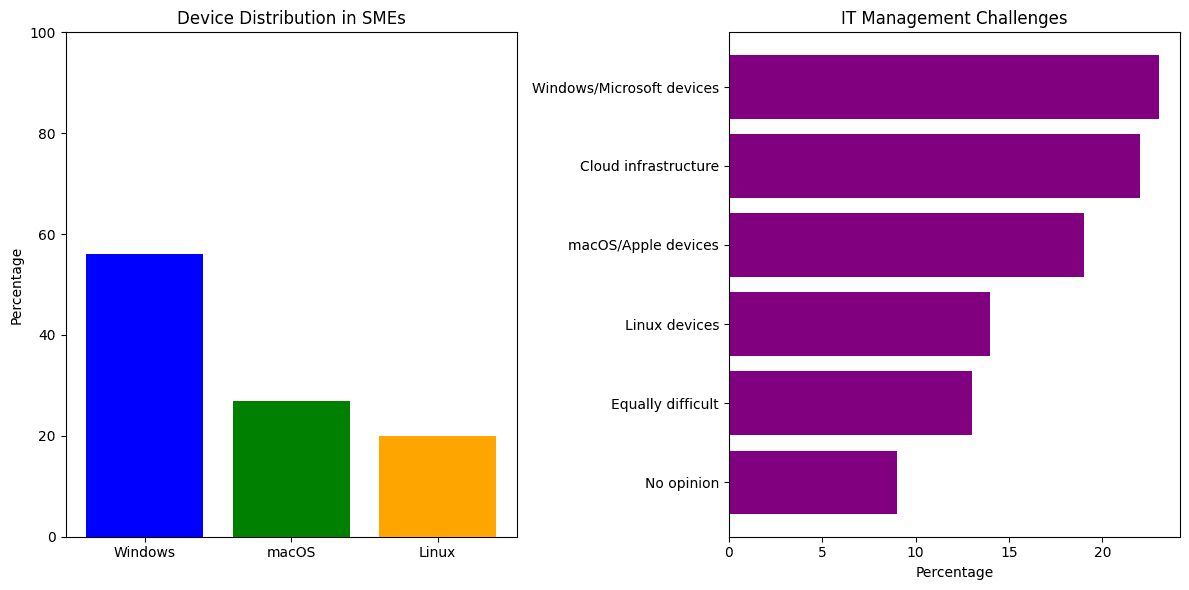Lorsqu’on leur a demandé les aspects les plus difficiles à gérer, les administrateurs informatiques ont classé Windows et d’autres appareils Microsoft les plus élevés à 23%, suivis d’une infrastructure cloud (22%), d’un macOS et d’autres appareils Apple (19%) et des appareils Linux (14%).